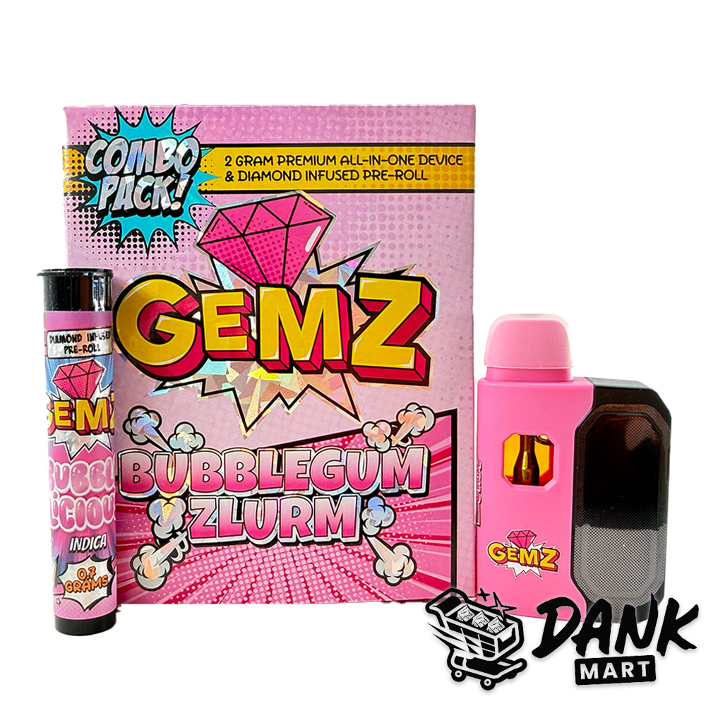 GEMZ 2G All In One Device & Diamond Infused Pre-Roll – Bubblegum Zlurm stands out for its dual-format design, combining a ready-to-use vapor device with a diamond‑infused pre‑roll for a layered, high‑grade experience. The formulation highlights refined cannabis extract enhanced with crystalline THCa diamonds, a quality signal associated with purity, potency, and terpene preservation.