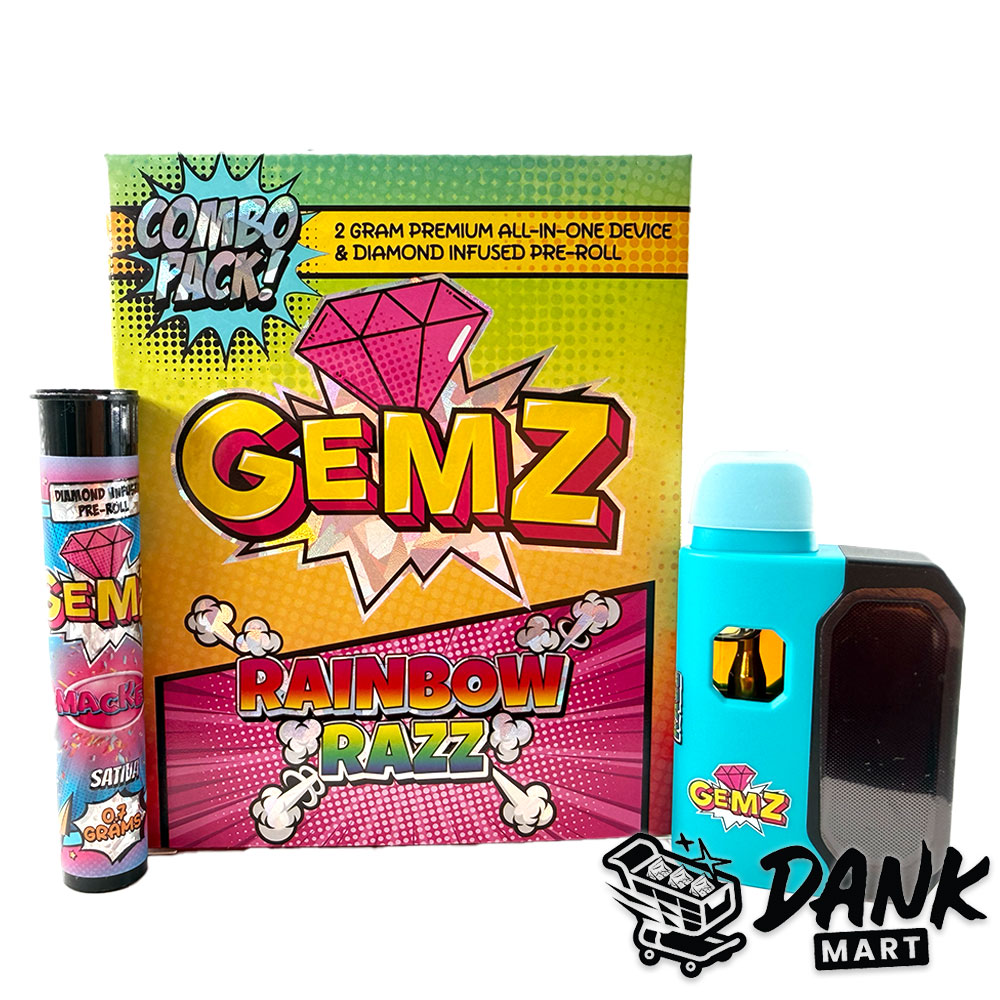 GEMZ 2G Premium All‑In‑One Device & Diamond Infused Pre‑Roll Combo Pack – Rainbow Razz stands out as a dual‑format offering designed for consumers who value both convenience and elevated extract quality. This premium bundle pairs a ready‑to‑use all‑in‑one vapor device with a diamond‑infused pre‑roll, combining advanced extraction with enhanced cannabinoid concentration. The formulation emphasizes refined processing methods and terpene preservation, delivering a consistent, high‑purity experience recognized among concentrate enthusiasts for its potency and clean performance.